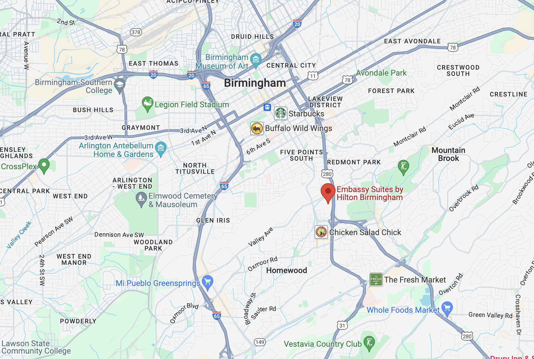 9:30 a.m. – 5 p.m., Friday, March 27, 2026: Embassy Suites Birmingham, 2300 Woodcrest Place, Birmingham, AL 35206.